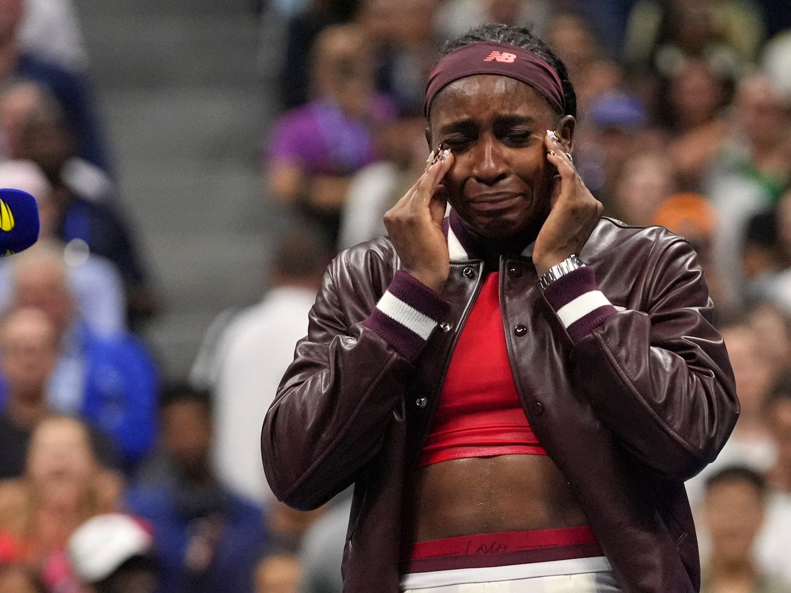 Coco Gauff, uit de Verenigde Staten, brak in tranen uit na haar overwinning op Donna Vekic uit Kroatië tijdens de tweede ronde van het US Open tennis kampioenschap op donderdag.