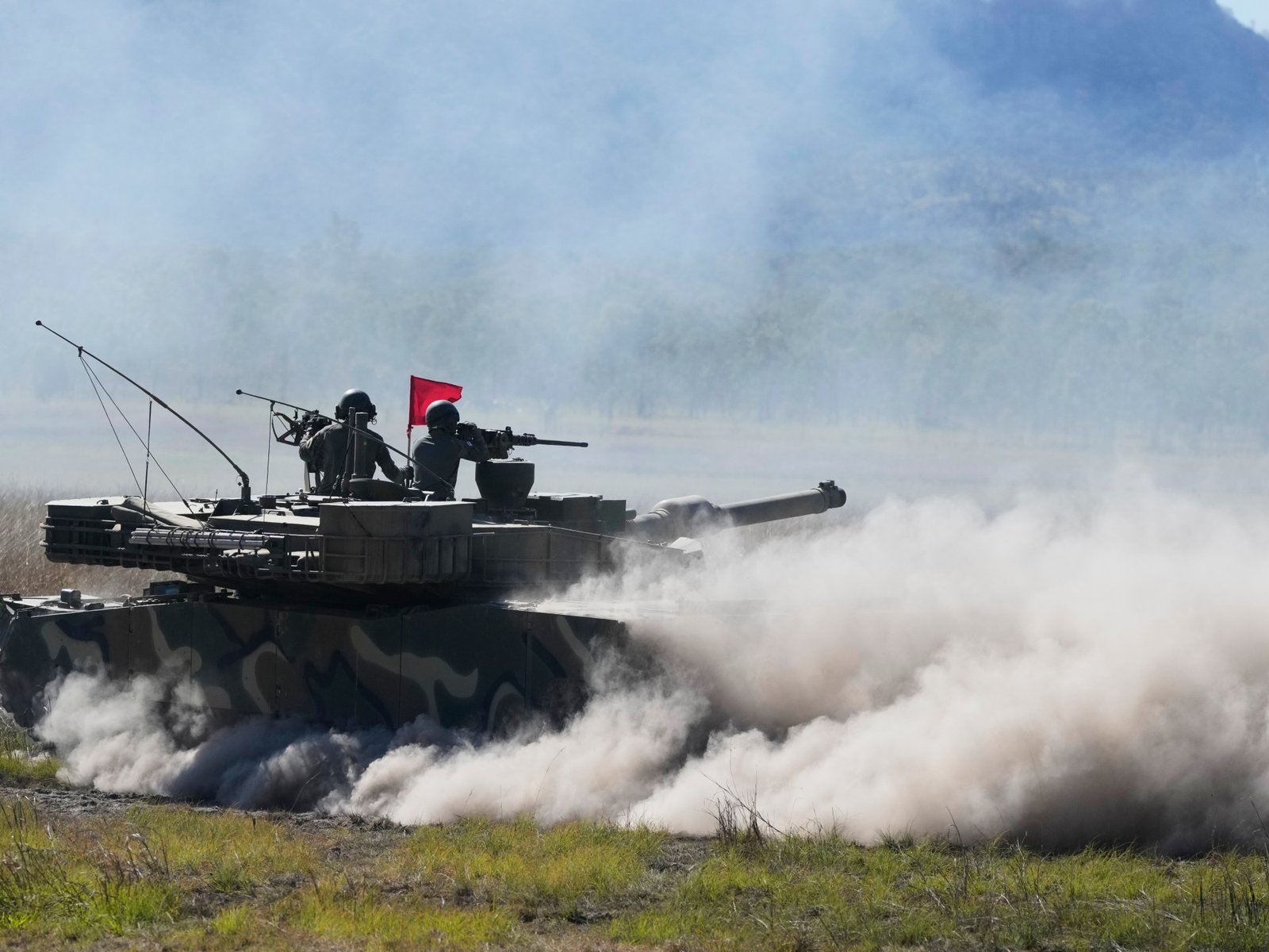 In Beeld Zuid-Koreaanse soldaten vuren vanaf een K1-tank tijdens Oefening Talisman Sabre 2025, de grootste oorlogsoefeningen ooit in Australië, die plaatsvinden in het Shoalwater Bay Trainingsgebied, nabij Rockhampton, Australië.