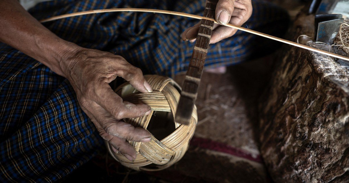 “Ik maak me zorgen over het verdwijnen van deze sport,” zegt meester chinlone-balmaker Pe Thein terwijl hij werkt in een zweterige werkplaats in Hinthada, 110 km ten noordwesten van Yangon. “Dat is de reden waarom we het doorgeven via ons handwerk.”
