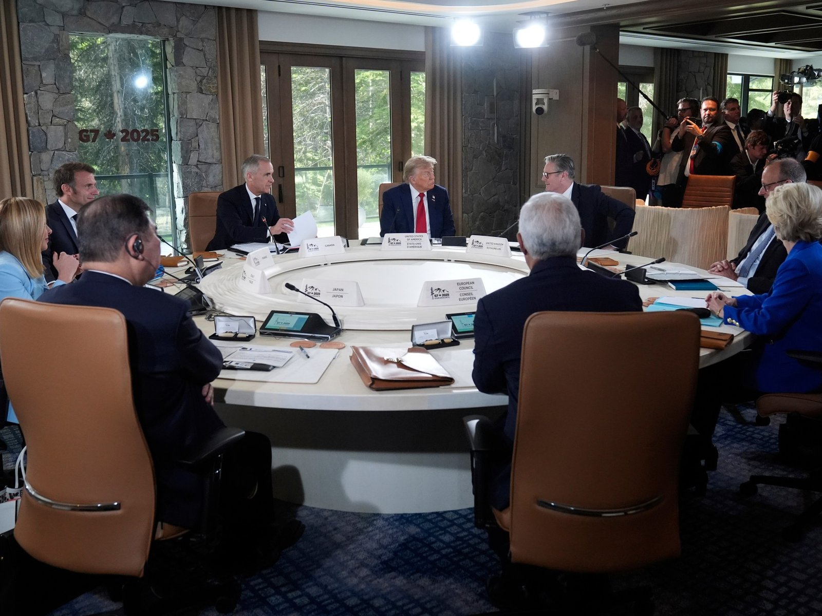 De meeste landen die vertegenwoordigd zijn op de G7-top worden al geconfronteerd met Trump’s basisheffing van 10 procent, met dreigingen van meer maatregelen in het vooruitzicht. Europese landen en Japan krijgen te maken met extra heffingen op auto’s, staal en aluminium. De G7 bestaat uit Canada, Frankrijk, Duitsland, Italië, Japan, het Verenigd Koninkrijk en de VS.