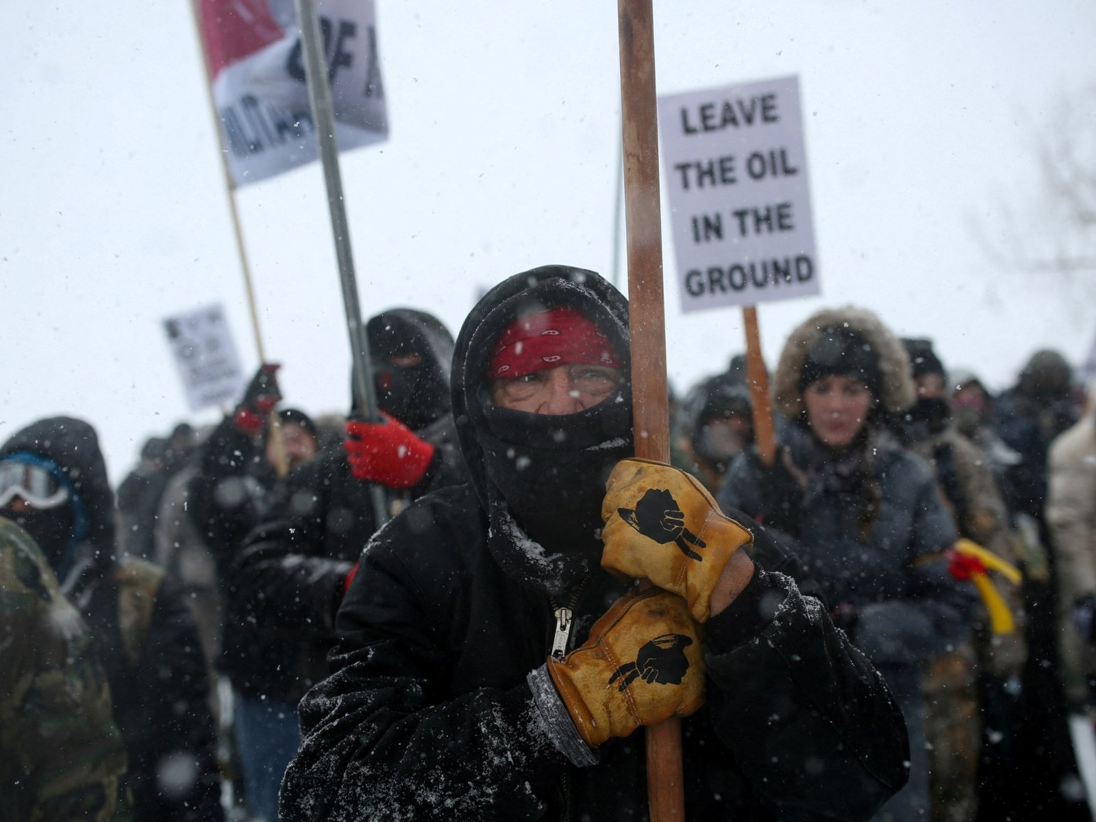 Zelfs toen de winterse omstandigheden zich aankondigden en honderden politieagenten de protesten patrouilleerden met golfbewegingen van gewelddadige arrestaties die ook journalisten doelwit maakten, bleven de Sioux en hun supporters op hun plaats.
