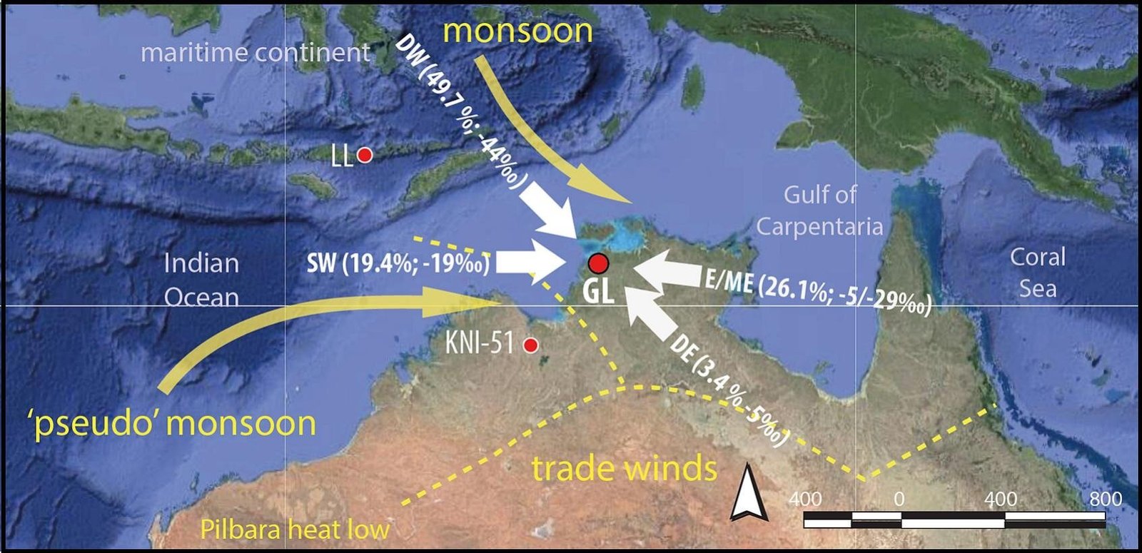 Het onderzoek legt een verband tussen veranderingen in het moessonseizoen en de snelle smelting van ijs op het noordelijk halfrond. Michael Bird, onderscheiden professor aan het College of Science and Engineering van James Cook University, leidde de studie. Hij verklaarde dat wetenschappers meer dan 19 meter in de bodem van de Girraween Lagune nabij Darwin hebben geboord en 160 kernmonsters hebben verzameld.