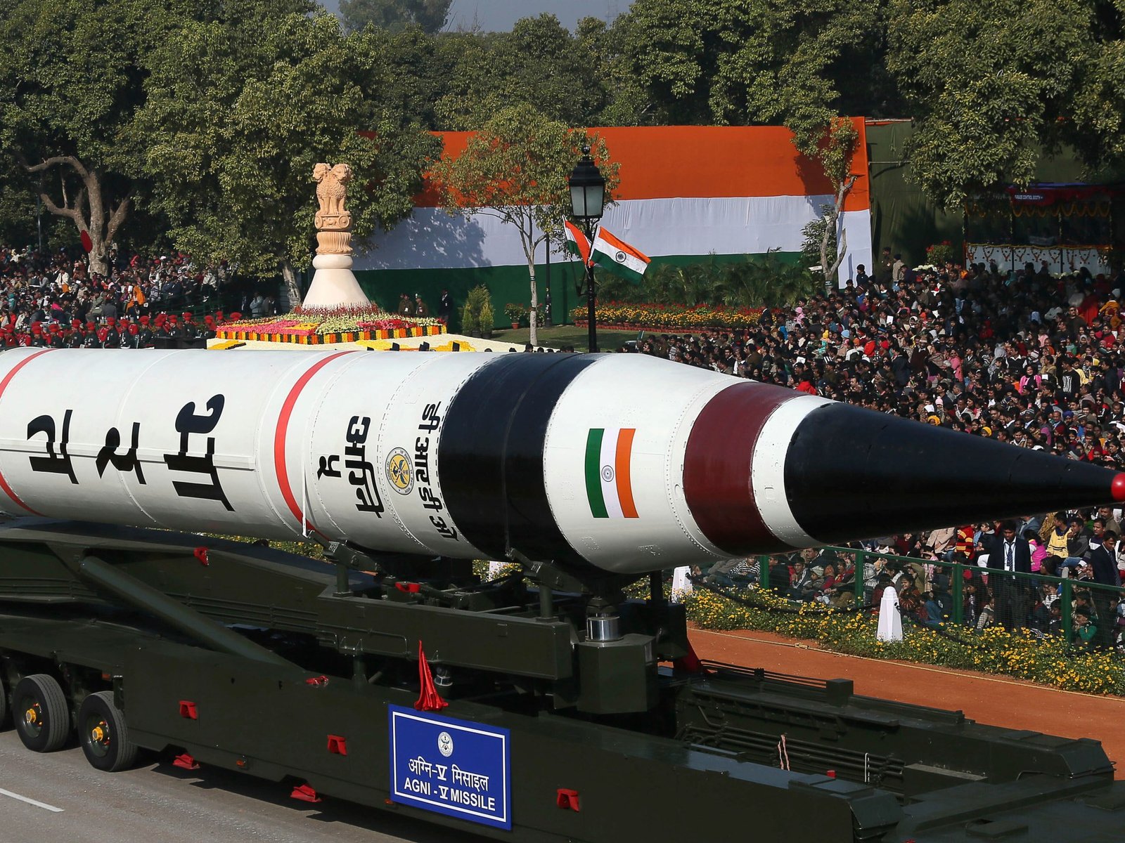 De Agni-V, wat “vuur” betekent in het Sanskriet, is 17,5 meter lang, weegt 50.000 kg en kan meer dan 1.000 kg aan nucleaire of conventionele lading vervoeren. Met een bereik van meer dan 5.000 km en hypersonische snelheden van bijna 30.000 km per uur is het een van de snelste ballistische raketten ter wereld.