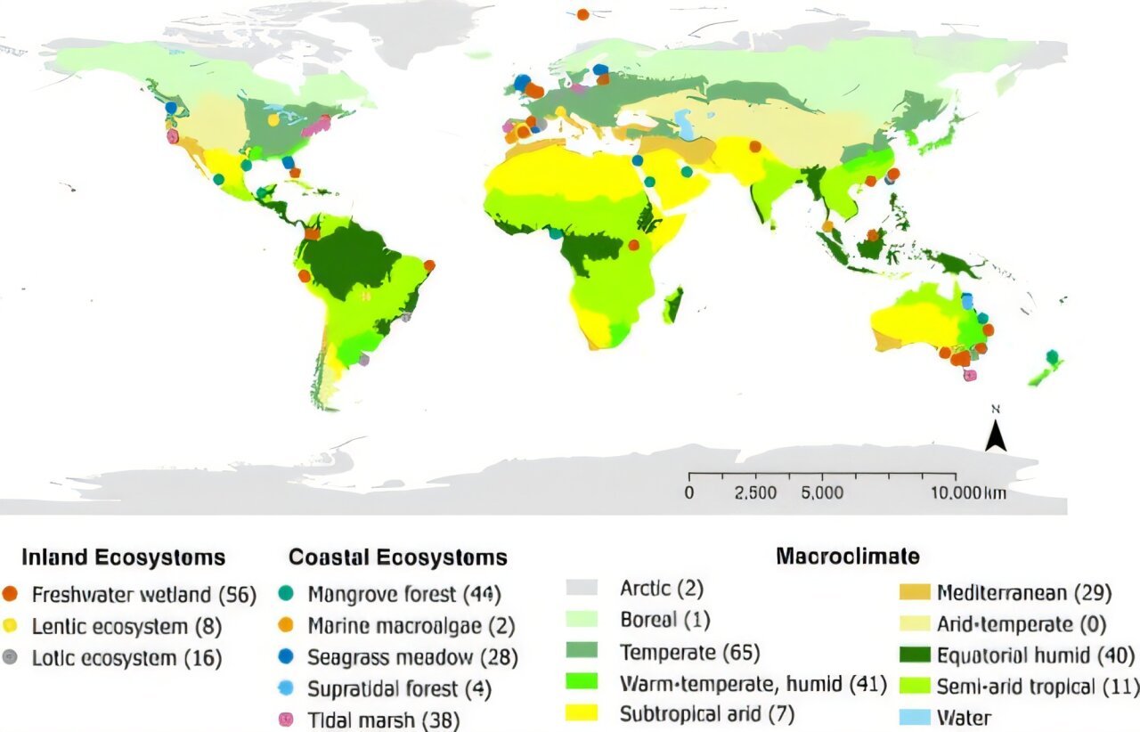 Theezakjes bieden een eenvoudige en gestandaardiseerde manier om te identificeren hoe klimaat, habitattypen en bodemtypen de afbraaksnelheden van koolstof in wetlands beïnvloeden. Bij elke locatie hebben wetenschappers tussen de 40 en 80 theezakjes ongeveer 15 cm onder de grond begraven en deze op verschillende tijdstippen gedurende drie jaar verzameld, waarbij ze hun GPS-locatie markeerden. Vervolgens hebben ze de resterende organische massa gemeten om te beoordelen hoeveel koolstof in de wetlands was bewaard gebleven.