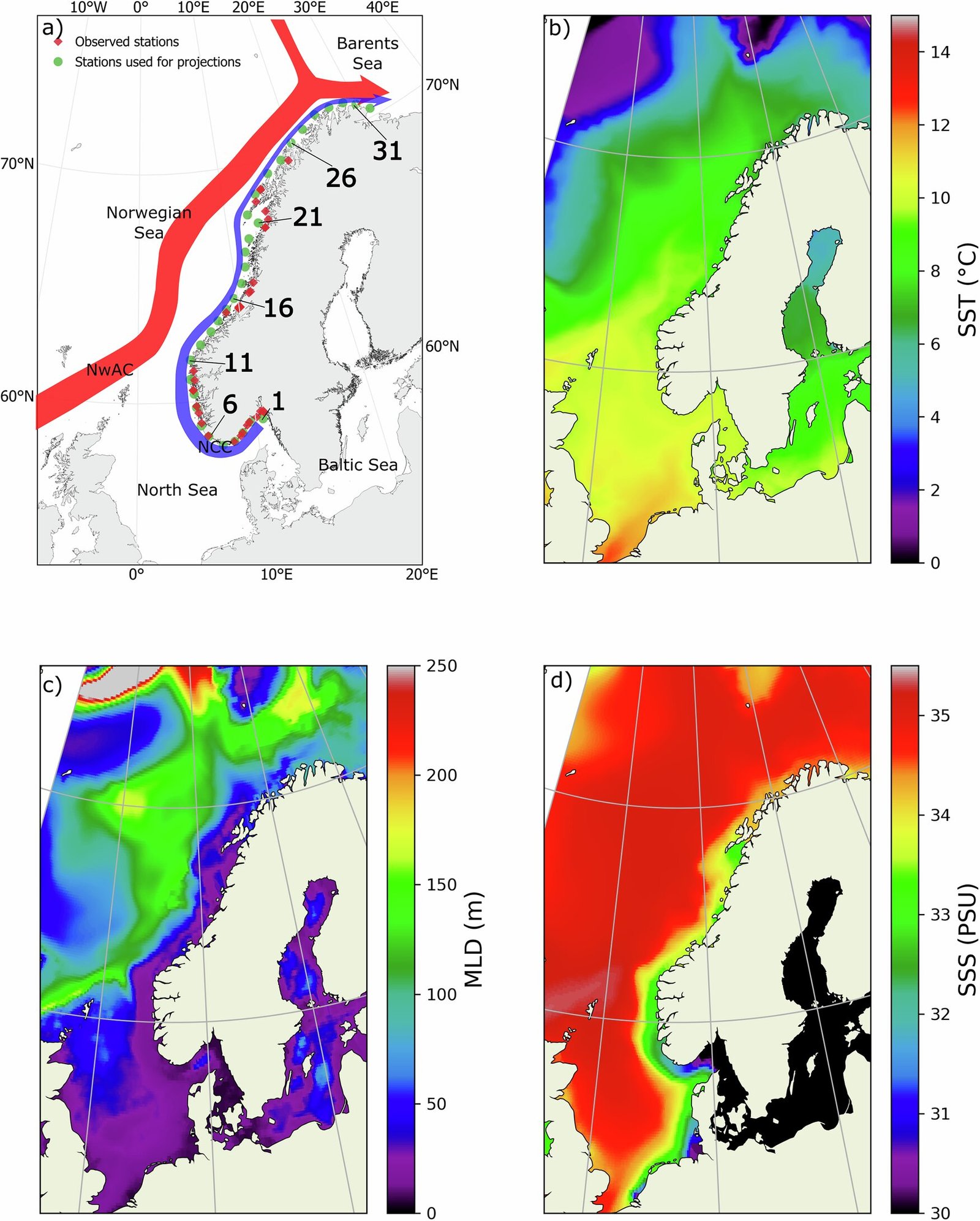 Een nieuwe studie heeft onderzocht hoe klimaatverandering de aanwezigheid van de twee meest giftige algensoorten langs de Noorse kust beïnvloedt. De onderzoekers gebruikten klimaatmodellen, waarnemingen van algen over een periode van 14 jaar en probabilistische modellen voor schadelijke algengroei. De periode 1995–2014 werd gebruikt als referentie voor de huidige omstandigheden en vergeleken met een gesimuleerd toekomstscenario waarin de atmosferische temperatuur met 3°C is gestegen. Verhoogde neerslag en de instroom van zoet water uit rivieren—die het zoutgehalte van de oceaan beïnvloeden—werden ook in de analyses opgenomen.