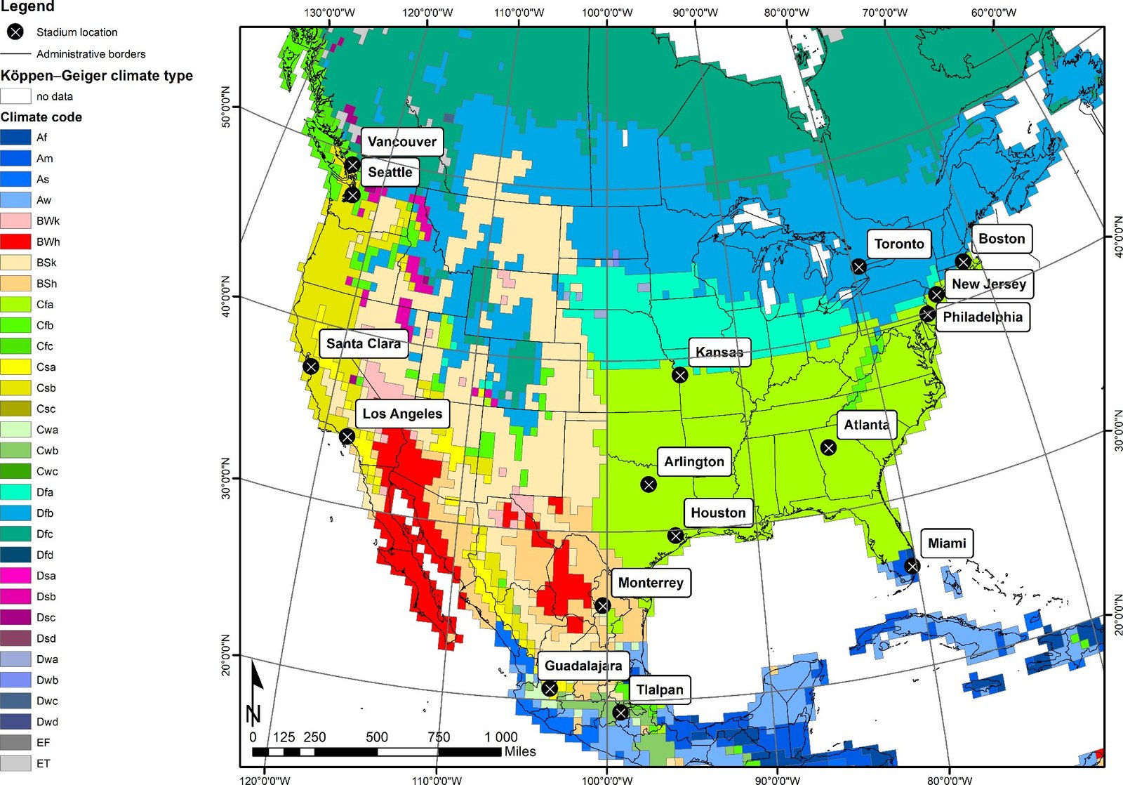 Eerdere studies over voormalige Wereldkampioenschapslocaties hebben de negatieve effecten voor voetballers benadrukt die spelen bij hoge relatieve luchtvochtigheid (Brazilië, 2014) of bij hoge luchttemperaturen (Rusland, 2018). Het Wereldkampioenschap 2026 vindt plaats van 11 juni tot 19 juli in Canada, Mexico en de Verenigde Staten, wanneer de zomertemperaturen in Noord-Amerika hun hoogtepunt bereiken.