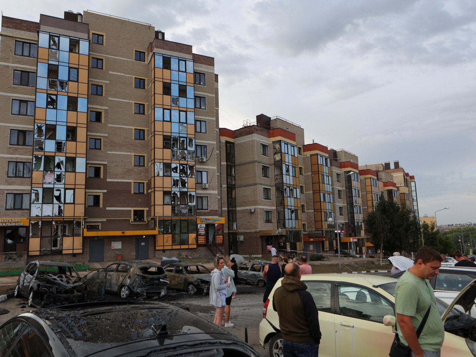 Oekraïne verhoogt aanvallen op de westelijke regio van Rusland om de troepen van Moskou af te leiden en een bufferzone te creëren, zeggen analisten. Dit beeld toont mensen die zich verzamelen na een vermeende Oekraïense militaire aanval buiten Belgorod op 2 september 2024. Kyiv, Oekraïne – Kleine groepen infanteristen, gesteund door gepantserde voertuigen, meerdere raketlanceerders, drones en gevechtsvliegtuigen, proberen een dorp in te nemen.