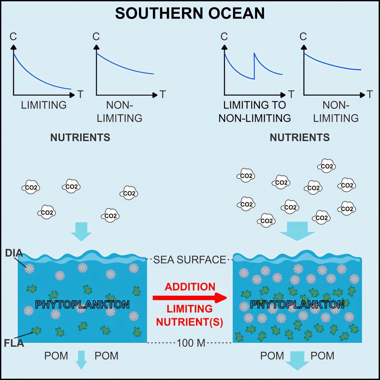 Om hun bevindingen te onderbouwen, combineerden de onderzoekers veldmetingen in de Zuidelijke Oceaan met computermodellering, waarbij ze de gegevens integreerden in een geavanceerde simulatie die de evolutie van alle belangrijke voedingsstoffen voorspelde. Wanneer de beschikbaarheid van bepaalde voedingsstoffen daalde, veranderde dit ook de soortensamenstelling van het plankton. Sommige soorten zijn groter en zwaarder en zinken sneller naar de diepe oceaan dan kleinere, lichtere soorten.