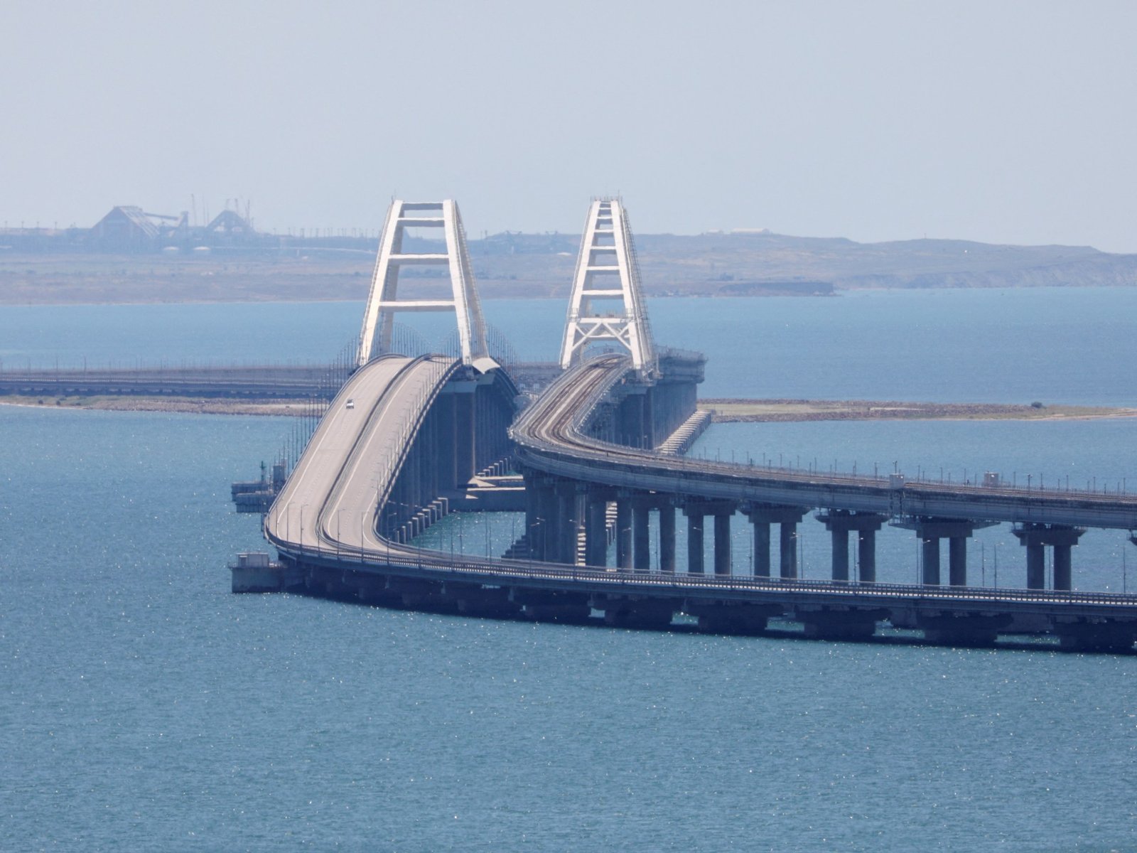 De 19 km lange Krimbrug over de Kerchstraat is de enige directe verbinding tussen het vervoersnetwerk van Rusland en het schiereiland Krim, dat Moskou in 2014 van Oekraïne heeft geannexeerd. De brug was een vlaggenschipproject voor de Russische president Vladimir Poetin. Ze bestaat uit een aparte weg en spoorlijn, beide ondersteund door betonnen palen, die overgaan in een bredere overspanning ondersteund door stalen bogen op het punt waar schepen passeren tussen de Zwarte Zee en de kleinere Azov Zee.